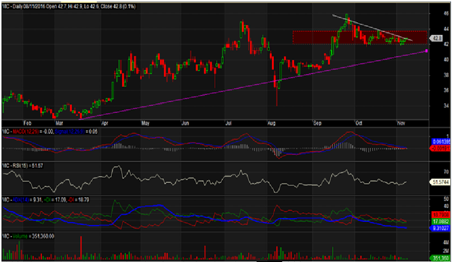 Có sự chuyển biến tích cực sau khi tạo đỉnh tuần 30/9/2016 sau đó giảm và đi ngang trong 4 tuần qua với biên độ dao động giá vùng 41.7-43.8, vào những phiên đầu tuần này VIC cho thấy sự tích cực về giá. Tuy nhiên chưa có sự ủng hộ của Volume vì tâm lý nhà đầu tư còn e ngại về sự kiệu bầu cử tổng thống Mỹ hầu như đang diễn ra trên toàn TTCK trong những phiên vừa qua.