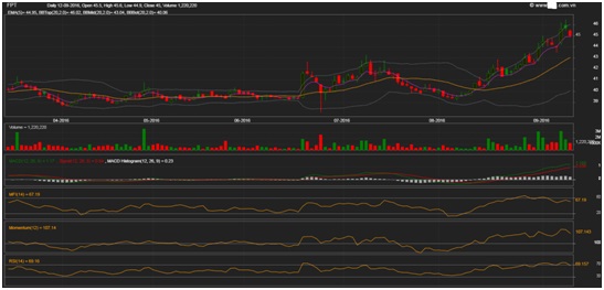 Chúng tôi đã mua FPT theo hệ thống vào ngày 26/08/2016 ( cách đây 11 phiên, hiện tại đang lời 4.65%), tiếp tục nắm giữ và mua thêm hàng khi giá điều chỉnh về vùng 43.700-48.000.