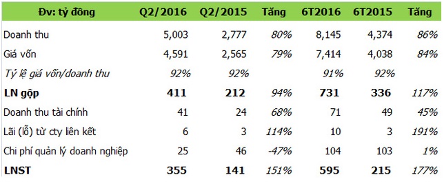 - Tăng trưởng 6 tháng đầu năm (so với cùng kỳ năm trước ) khá ấn tượng : DT tăng 86 %, LNST tăng 177%. Kỳ vọng CTD vẫn giữ nhịp tăng tốt trong thời gian tới đi theo nhu cầu xây dựng tại Việt Nam đang tăng cao.